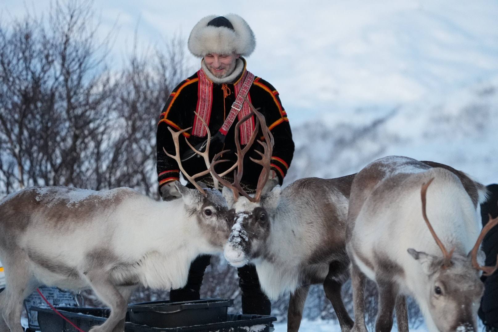 Z Johnym znamy się już od dawna. Dla naszych klientów organizujemy bardzo ciekawą atrakcję, którą nazywamy „Kultura Samów”. Wydarzenie zazwyczaj rozpoczyna się poszukiwaniem reniferów. Johny wie, gdzie je znaleźć. Nasze zadanie polega na nakarmieniu ich, a one w tym czasie bardzo chętnie pozują do zdjęć. W dalszej części spotykamy się w naszej grill hyttcie, gdzie uczestniczymy w spotkaniu z Johnym, który opowiada o ciekawej tradycji i życiu pradawnych Lapończyków.